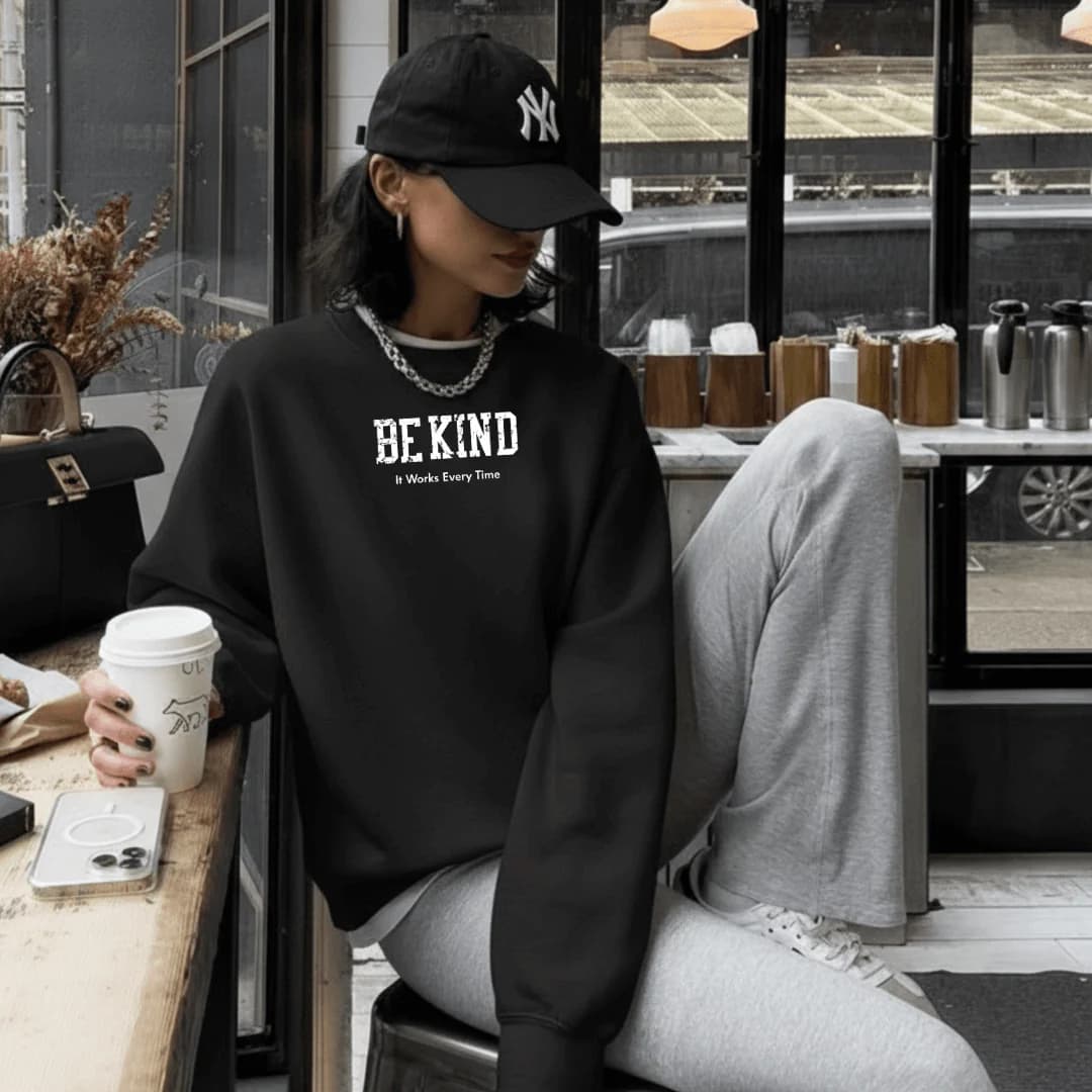 In a world that can be loud and chaotic, kindness is your quiet superpower. The Be Kind (It Works Every Time) sweatshirt is a timeless reminder that compassion never goes out of style — and it always finds its way back to you. Soft, cozy, and unmistakably purposeful. Because simple truths hit the hardest.