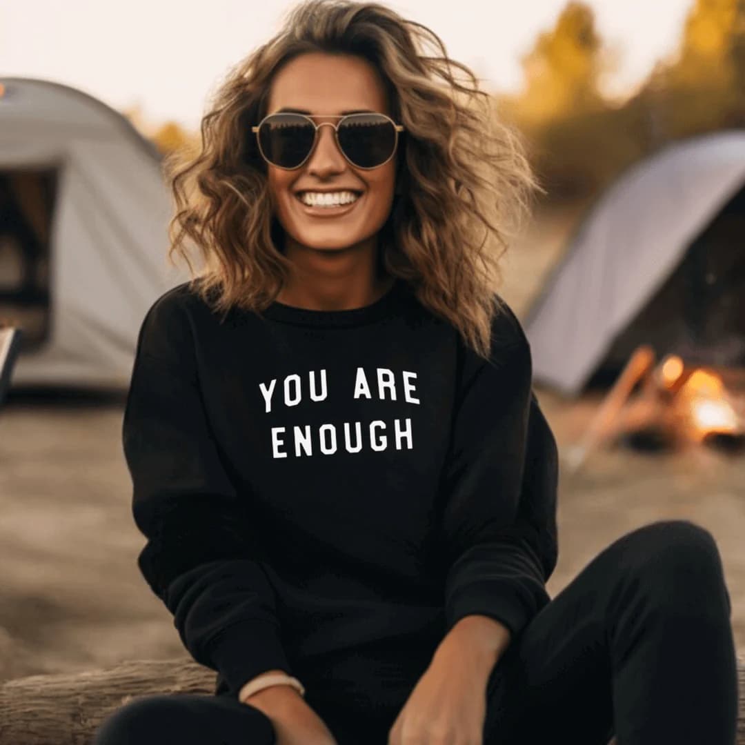Why You’ll Love It: Comforting and steady. The message feels calm and grounded — easy to wear on days you need reassurance, warmth, and a reminder that who you are is already enough.